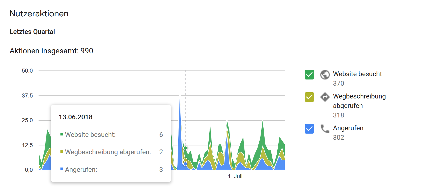 Sie können anhand der Aufrufe und Aktionen von Kunden den Erfolg Ihres Unternehmens beurteilen und entscheiden, wie Sie sich von anderen Unternehmen abheben möchten.